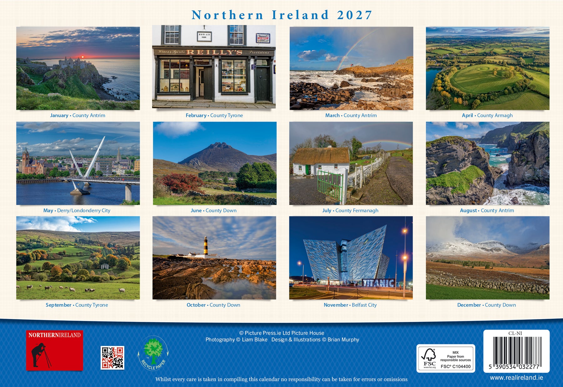 This sumptuously produced calendar features the work of celebrated Irish landscape photographer Liam Blake. Liam travels the length and breadth of Ireland throughout the year in order to capture images of the people and landscape, the towns and villages, the pubs and the shopfronts. This particular collection of images celebrates Northern Ireland.